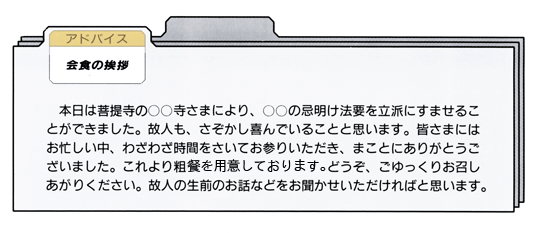 喪主と遺族は末席に座り、お礼の挨拶をします。 |